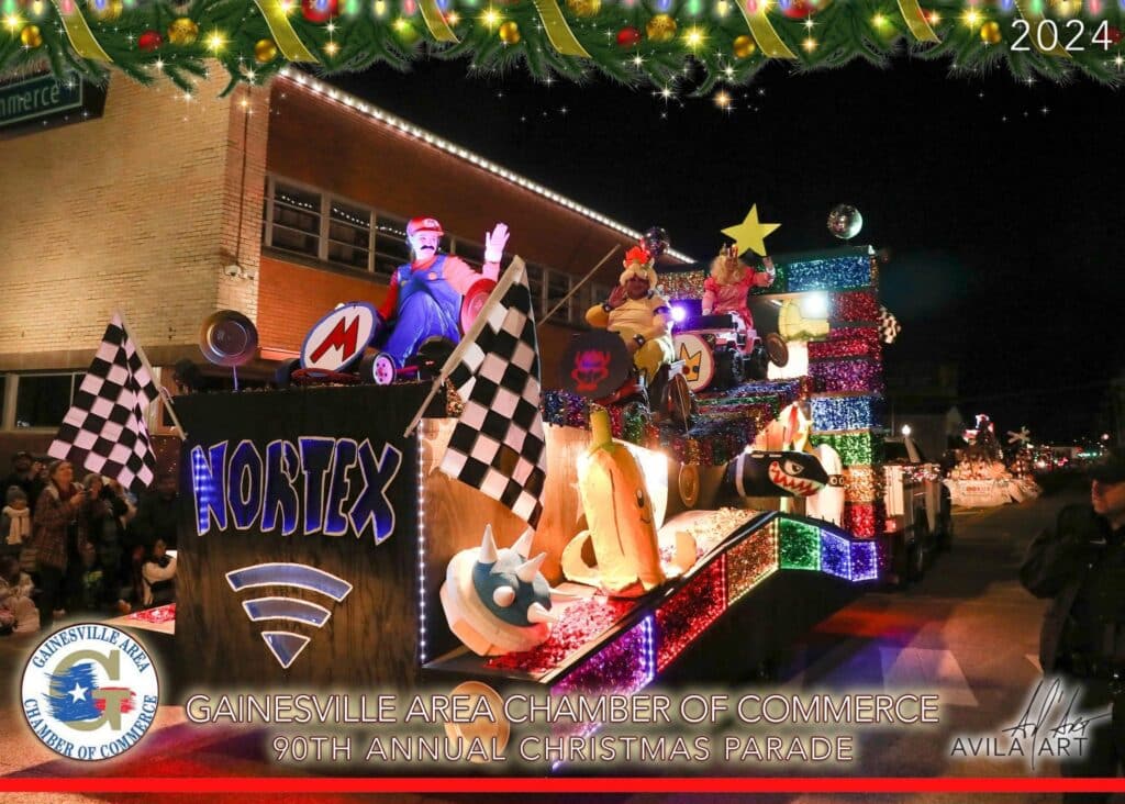 The Nortex Mario Kart racers hit the legendary Rainbow Road for 2024 Christmas, leaving other providers in the dust! With our float bursting with Mario-themed fun, weโre showing off our Fiber Fast Internetโbecause when it comes to speed, reliability, and local availability, weโre unstoppable!